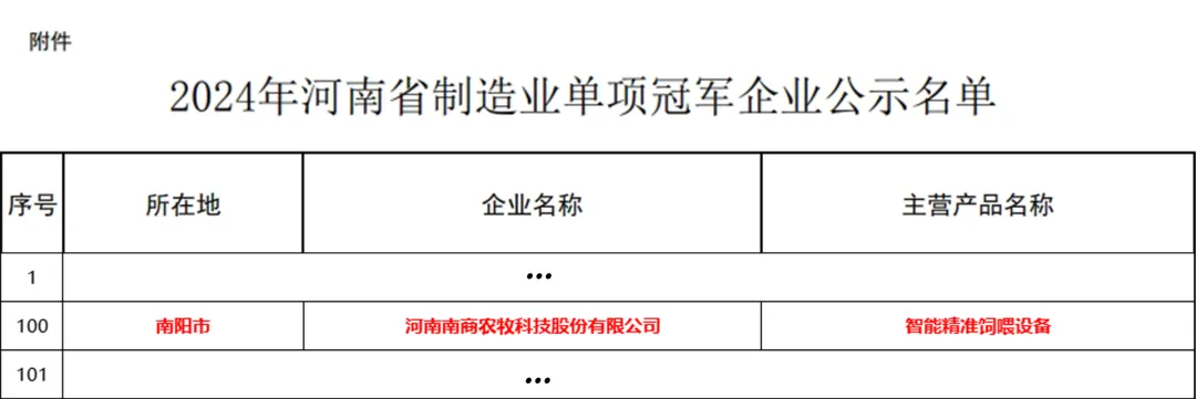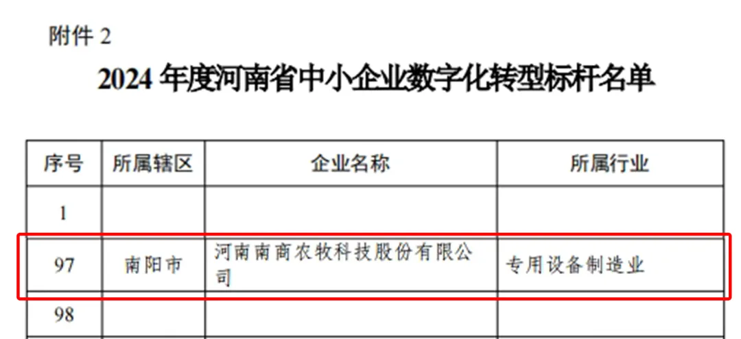 01.2024年河南省制造業(yè)單項(xiàng)冠軍企業(yè)近日,河南省工業(yè)和信息化廳公示了關(guān)于2024年河南省制造業(yè)單項(xiàng)冠軍企業(yè)名單和河南省數(shù)字領(lǐng)航企業(yè)中小企業(yè)數(shù)字化轉(zhuǎn)型標(biāo)桿,南商農(nóng)科憑實(shí)力入選。