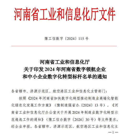 “數(shù)字領(lǐng)航”企業(yè)是河南省重點(diǎn)產(chǎn)業(yè)鏈頭部企業(yè),聚焦全要素、全流程、全生態(tài)數(shù)字化轉(zhuǎn)型,深化新一代信息技術(shù)與制造業(yè)融合發(fā)展,對(duì)行業(yè)數(shù)字化轉(zhuǎn)型具有全方位引領(lǐng)帶動(dòng)作用。