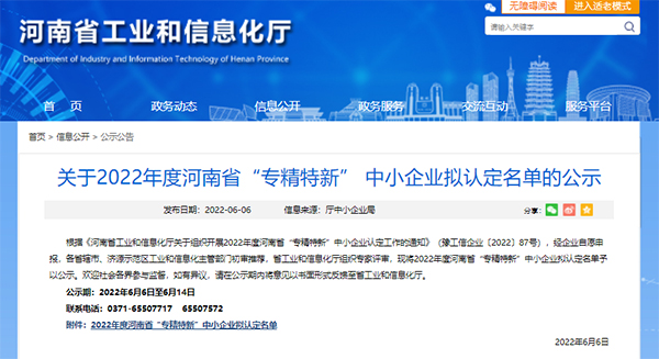 6月6日,河南省工業(yè)和信息化廳對(duì)2022年度“專精特新”中小企業(yè)擬認(rèn)定名單進(jìn)行了公示,南商農(nóng)科通過嚴(yán)格審核位列其中