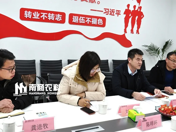 2月16日下午,正邦集團數字畜牧研究院黃振華院長、采購運營總監方友為、設計所陳祥環所長、物聯網所王毅副所長、流程IT張興華總監一行五人蒞臨南商考察交流,南商農科董事長曹沛、營銷中心總經理劉加加、技術總監裴孟俠、研發部經理龔進牧等全程陪同交流。