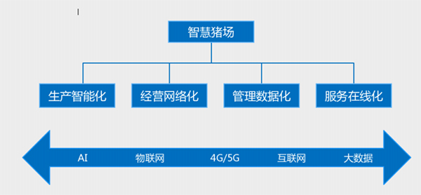 結合豬場具體的工藝及模式,在智能化終端,自動化系的基礎上,通過物聯網技術、AI技術、組成的終端設備+物聯網+大數據+管理軟件豬場應用場景。智能終端設備、自動化系統設備可實現豬場養殖過程中的關鍵功能,可實現網絡化布局,可實施本地及遠程的監控和設備管理,可實施關鍵數據的收集、運算和應用。智慧豬場對豬場實施系統化、流程化、數據化的管理。達到減少人工成本、生產成本、生產損失,增加生產效益的目的。