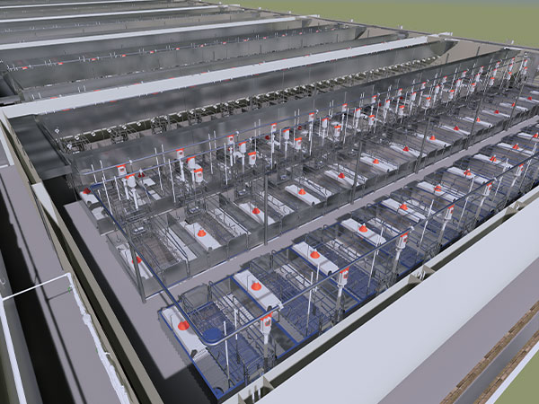 樓房豬場的建設(shè)與平層豬場有很大的區(qū)別,而樓房養(yǎng)豬最為突出的就是集約化養(yǎng)殖模式。南商農(nóng)科公司在樓房豬場的建設(shè)過程不斷總結(jié)經(jīng)驗(yàn),如樓房養(yǎng)豬案例《河南信陽年存欄1.5萬頭母豬生態(tài)養(yǎng)殖建設(shè)項目》中,沉淀了一系列應(yīng)對措施和解決方案,促使樓房豬場項目有序、高質(zhì)量地建設(shè)。