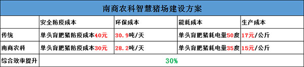 說到智能化水平還有一點值得注意,智能化養豬設備的投入,不僅可以大大降低人工成本,還可以大大減少飼料浪費,提高飼料的轉化率。養豬成本還涉及安全防疫成本、環保成本、能耗成本等各個環節,拿10000頭智慧豬場建設方案和傳統豬場建設方案做對比我們得出了以下結論: